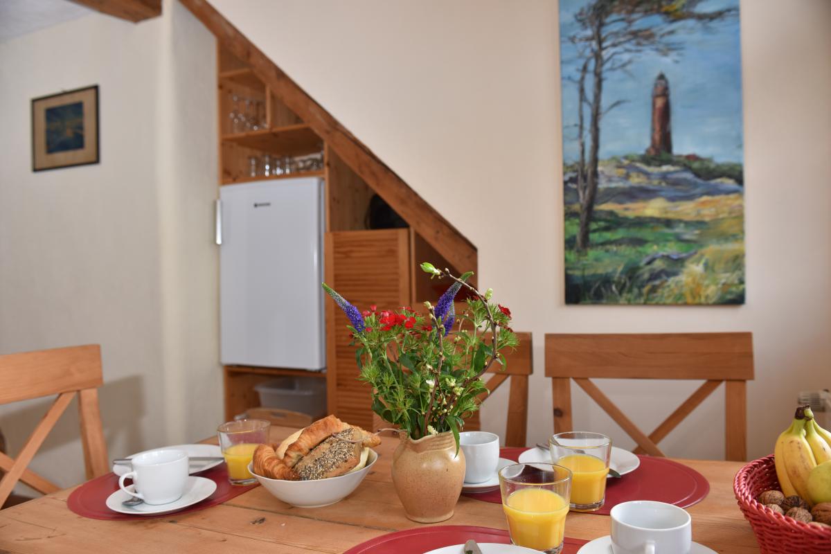 Die 55 qm große gemütliche Wohnung ist für 4 Personen geeignet. Sie hat einen Südeingang mit großer Diele. Von hieraus geht es in den Wohnbereich im Obergeschoss.