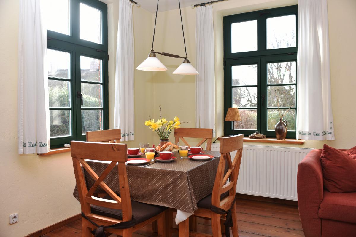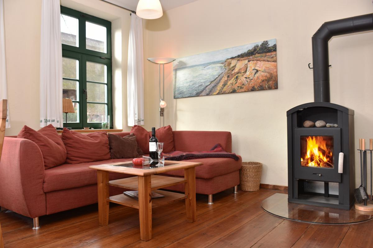 Die 70 qm große Wohnung ist für 4 Personen geeignet, wobei eine Aufbettung für weitere 2 Personen im Wohnzimmer möglich ist. Der Eingang der Zeese liegt im Osten des Hauses und ist von einer Holzterrasse gesäumt, von der man einen Blick auf die wunderschönen reedgedeckten Häuser der Neuen Straße hat.